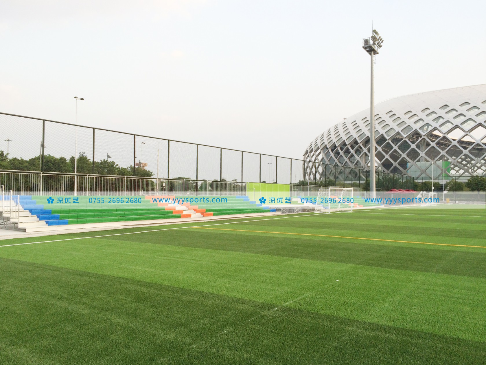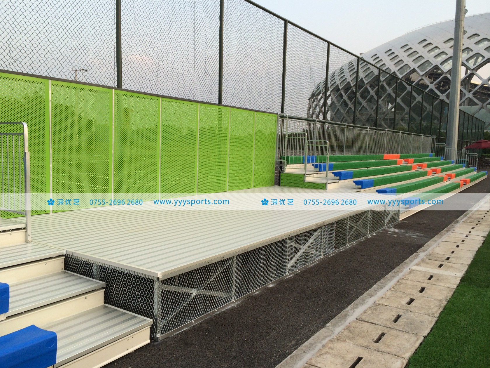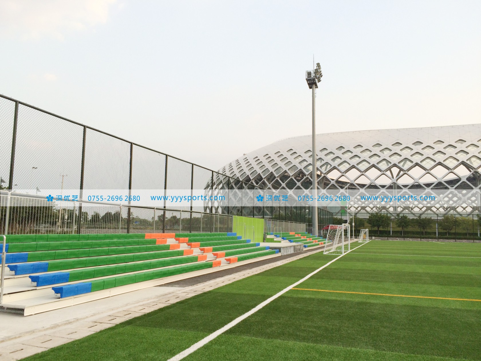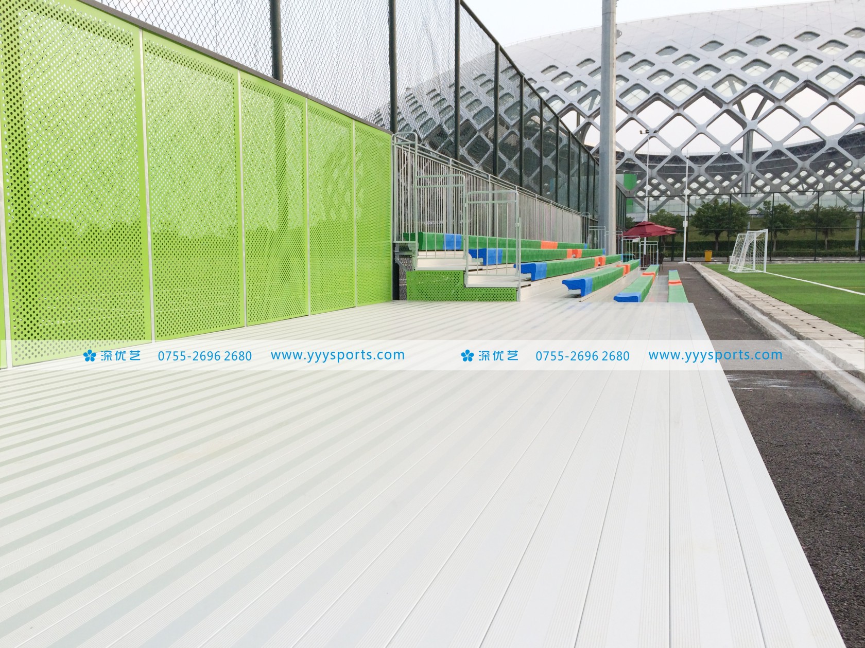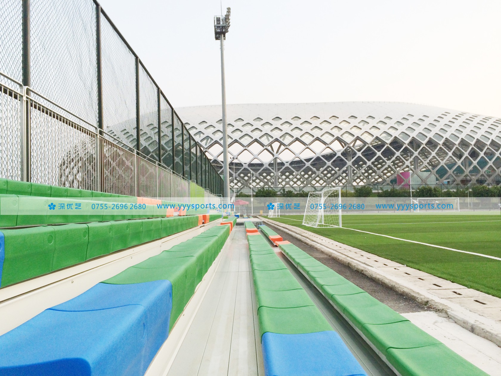 深圳灣體育中心戶外金屬看臺位于深圳灣體育中心新建的“足球運(yùn)動中心”,華潤集團(tuán)深圳灣體育中心管理層和足球運(yùn)動中心經(jīng)營方經(jīng)過前期充分調(diào)研和考察,采用了由深圳優(yōu)藝體育設(shè)備有限公司設(shè)計、生產(chǎn)、安裝的鋼結(jié)構(gòu)金屬看臺,鋼結(jié)構(gòu)金屬看臺這一在歐美發(fā)達(dá)國家廣泛使用的體育場館配套產(chǎn)品在安全性、造價經(jīng)濟(jì)性、工期及美觀耐用和對環(huán)境友好環(huán)保性方面對比傳統(tǒng)混凝土看臺具有全方位的優(yōu)勢。
