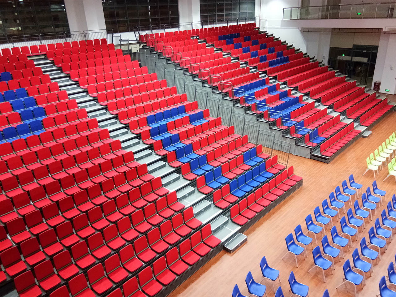 座椅的色彩光鮮亮麗,不僅為學(xué)校體育場館增添動感的氣氛。而且多年不易脫色,室內(nèi)外全天候環(huán)境使用。先進(jìn)的底部結(jié)構(gòu)設(shè)計,有效增加負(fù)載的情況之下,降低系統(tǒng)自重,科學(xué)的解決了移動看臺過于笨重,運(yùn)行多年易產(chǎn)生系統(tǒng)變形等問題。